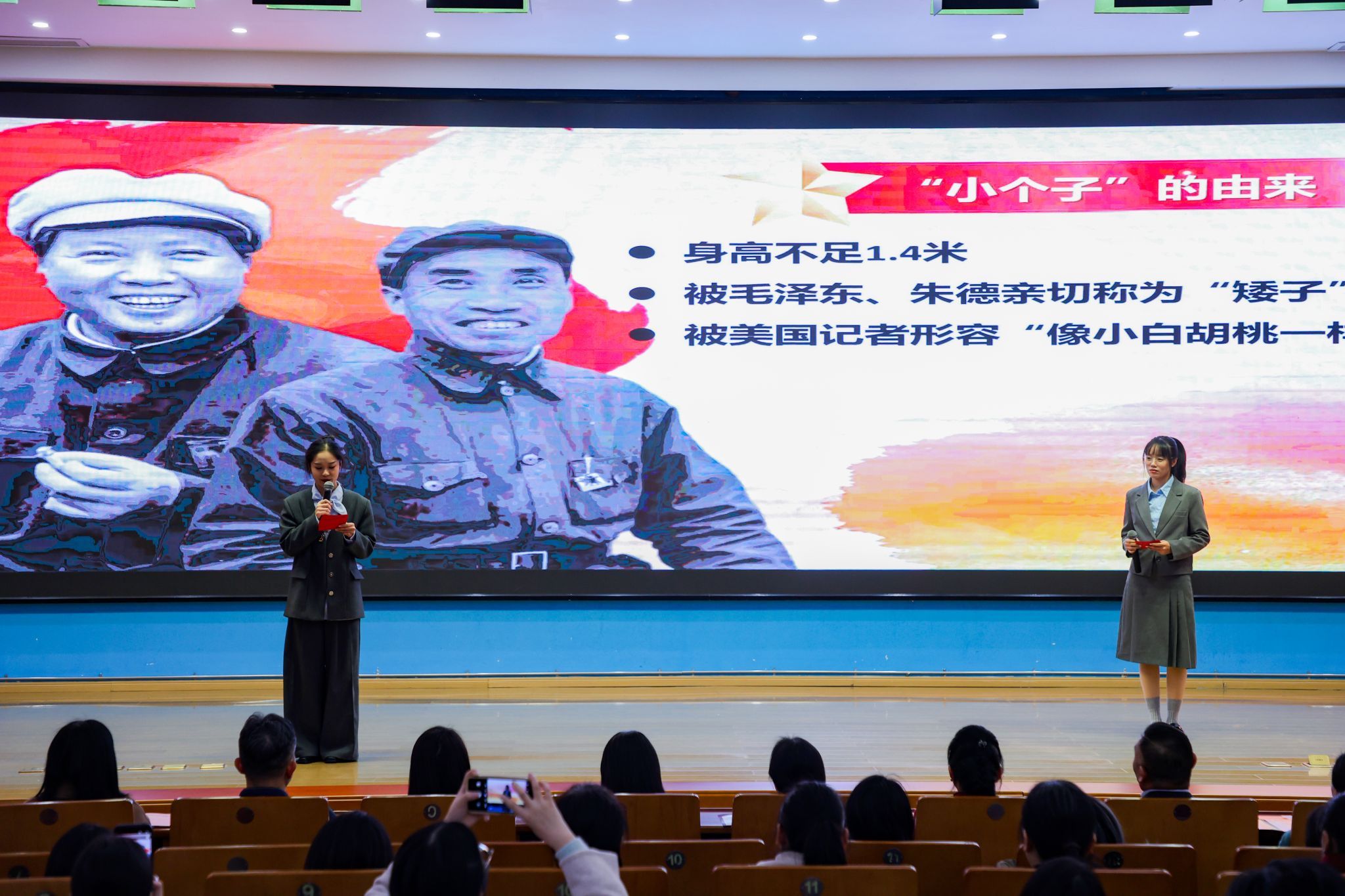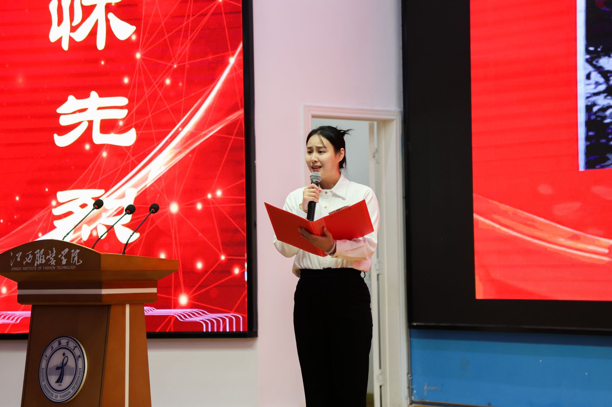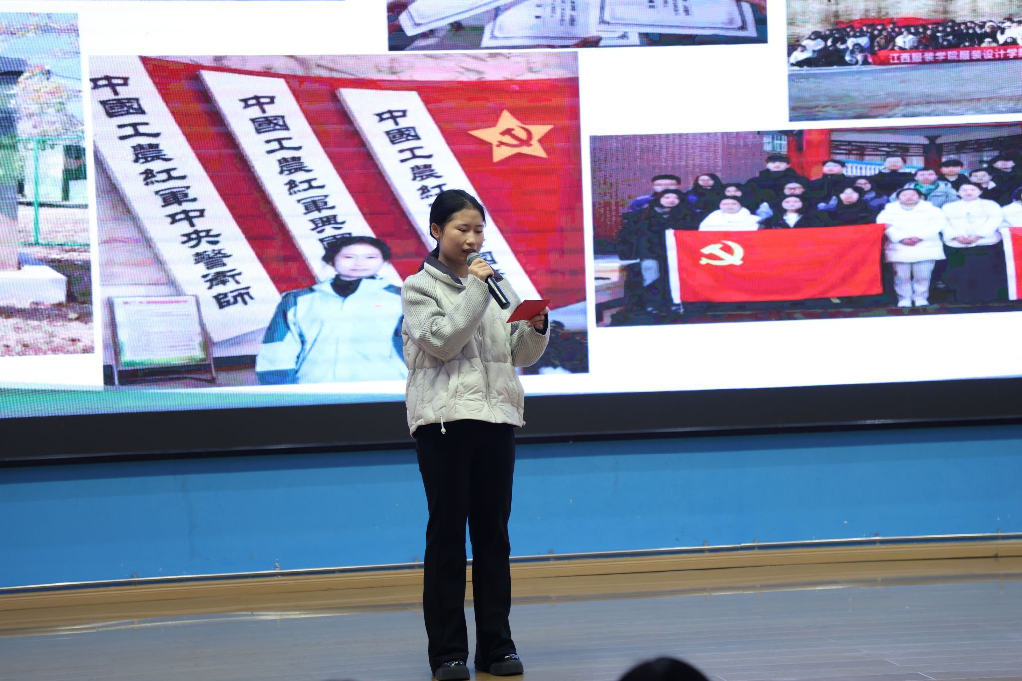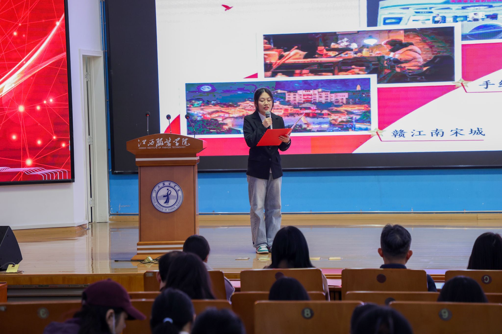 随后的红色故事分享会精彩纷呈,省妇儿中心与江服师生以故事分享会、红色主题微课、红色节目、红色成长故事讲述、红色家书朗诵、红色歌曲演唱等互动环节,深情讴歌、讲述了发生在江西红土地上的巾帼英雄故事以及学生讲述个人成长故事。省妇儿中心钟晓琪同志讲述了《机要战线上的“丹娘”》--新四军女战士施奇的故事;大数据304永利集团官网入口夏诗雨同学分享了《青春里的“赣”货:信仰、知识、老手艺》红色主题微课;304永利集团官网入口徐小年、黄月君讲述了《小个子里的大力量——革命女英雄危秀英的故事》;2025304永利集团官网入口国际时尚艺术节暨第29届“润华奖”一带一路大学生时装设计与技能大赛金奖获得者、服装设计304永利集团官网入口徐佳丽同学讲述了个人成长的故事;省妇儿中心与江服师生共同朗诵了红色家书《革命到底康克清》,字里行间的家国情怀深深打动了在场每一位听众。故事中蕴含的坚如磐石的理想信念、百折不挠的顽强意志、视死如归的英雄气概和甘于奉献、勤奋好学的崇高境界,让师生们接受了一次深刻的精神洗礼和思想淬炼。最后,六位女同学演唱的红色歌曲《花开中国》,将活动推向了高潮,现场掌声不断,气氛热烈感人。