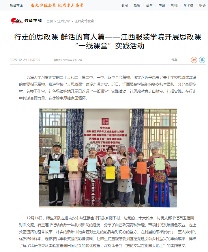 为深入学习贯彻党的二十大和二十届二中、三中、四中全会精神,落实习近平总书记关于学校思政课建设的重要指示精神,推进学校“大思政课”建设走深走实,近日,304永利集团官网入口组织多支师生团队,分赴基层乡村、劳模工作室、红色场馆等地开展思政课“一线课堂”实践活动,让思政教育走出教室、扎根实践,在行走中传递真理力量,在体验中厚植家国情怀。