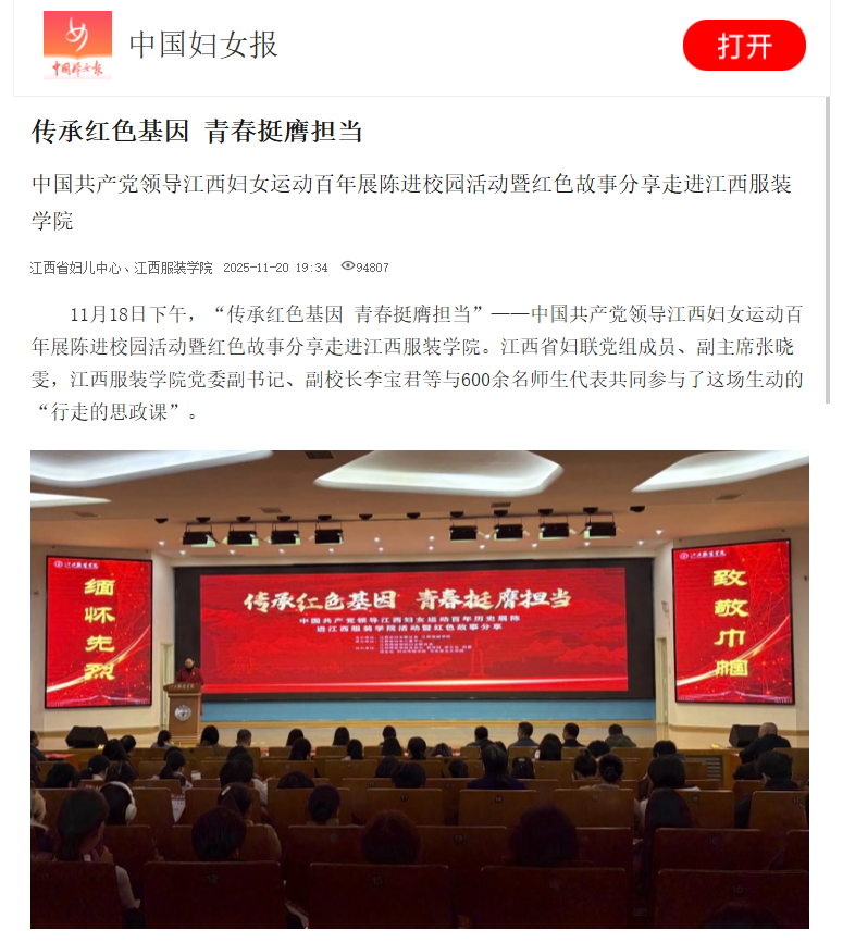 中国妇女报:传承红色基因 青春挺膺担当 中国共产党领导江西妇女运动百年展陈进校园活动暨红色故事分享走进304永利集团官网入口