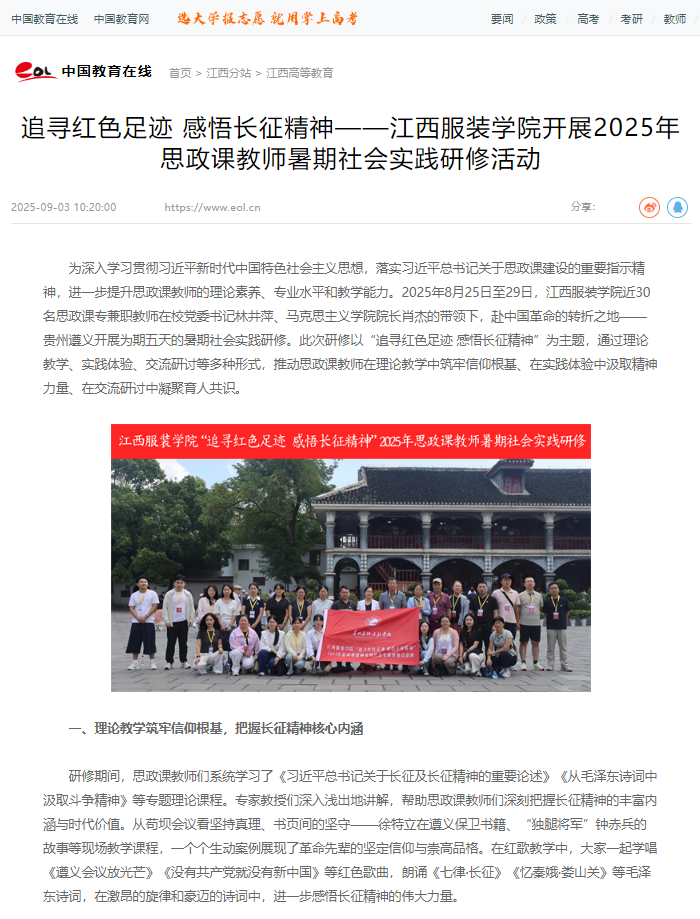 中国教育在线:追寻红色足迹 感悟长征精神——304永利集团官网入口开展2025年思政课员工暑期社会实践研修活动