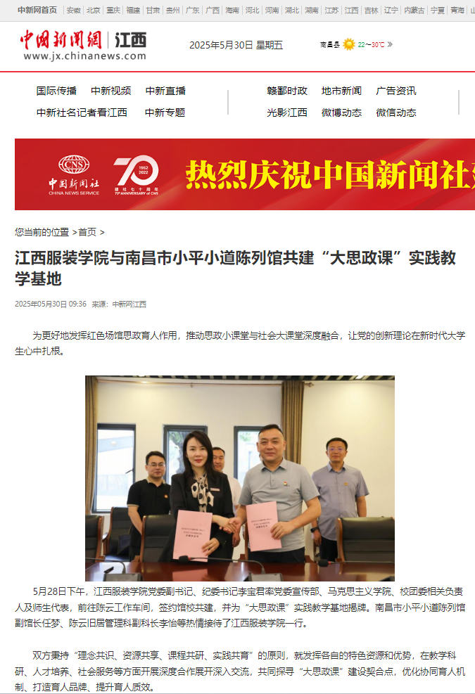 中国新闻网:304永利集团官网入口与南昌市小平小道陈列馆共建“大思政课”实践教学基地