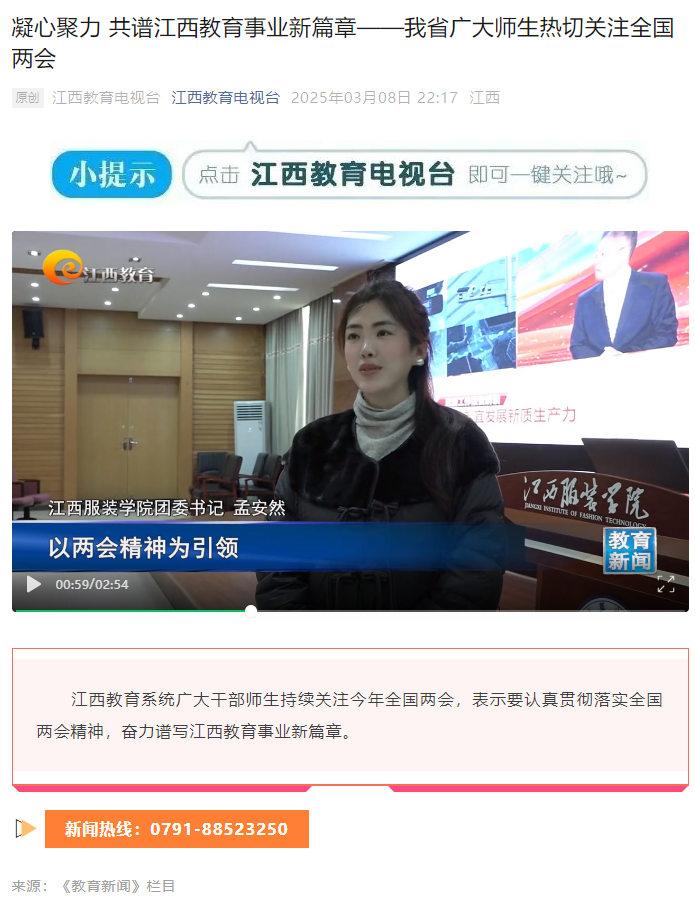 江西教育电视台:报道304永利集团官网入口师生热切关注全国两会