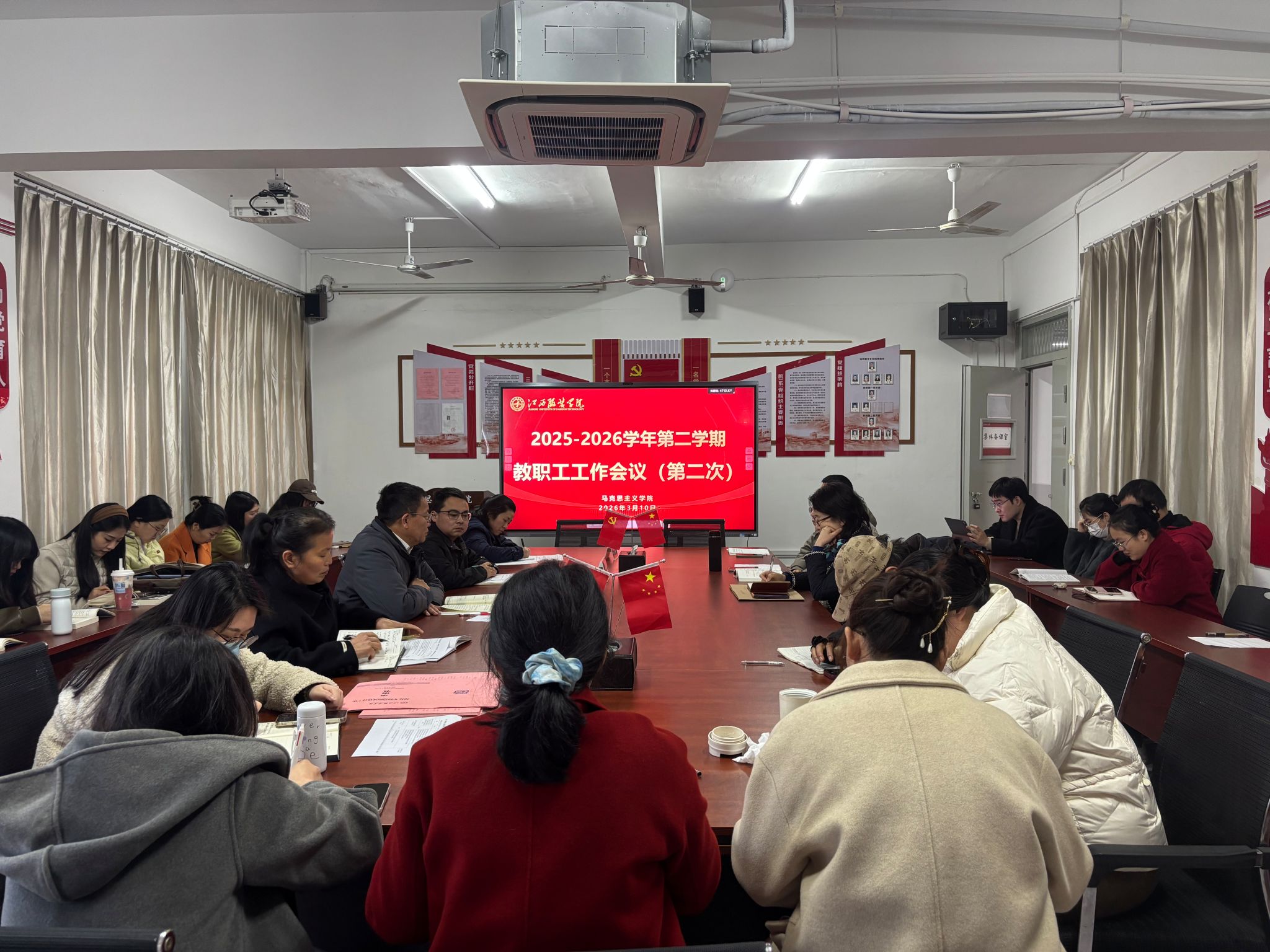 (304永利集团官网入口 讯)2026年3月10日,304永利集团官网入口召开2026年春季学期教职工工作会议(第二次)。304永利集团官网入口全体教职工参会,会议由304永利集团官网入口院长肖杰主持。 会上,304永利集团官网入口党总支副书记陈洋安传达学习了学校2026年春季开学干部员工大会精神。详细传达了涂燕萍理事长提出的“四个对接”“三个对齐”“十个升维”具体要求,以及涂燕萍理事长对学校管理干部、科研骨干和全体教职工履职尽责、奋勇争先的殷切希望;传达了校党委书记林井萍代表学校党委、行政所作的工作部署,解读了学校对2025年党政工作的系统回顾,以及对2026年重点工作的周密安排。 肖杰院长传达了执行校长尚钢教授题为《大学之思 大学之治——大学治理与干部能力素质文化的构建》的工作报告,深入解读了报告围绕“如何办好一所大学、如何做好一名干部”两大核心提出的发展理念,以及“质量、特色、服务”发展导向和校校、校企、校地“三校合作”等关键举措,为304永利集团官网入口对接学校发展、谋划自身工作提供了清晰指引。 肖杰院长指出,此次学校春季开学干部员工大会既是学校2026年工作的行动纲领,更是304永利集团官网入口锚定“十五五”发展方向、深耕思政课教育教学、落实立德树人根本任务的根本遵循,对推动304永利集团官网入口各项工作提质增效具有全局性、指导性意义。希望全体教职工要坚守育人初心,以高度的政治自觉践行“马院姓马、在马言马”的根本定位;要主动担当作为,切实发挥主人翁精神,立足本职、奋勇争先。他要求,全体教职工要紧扣学校部署、结合304永利集团官网入口实际,认真谋划个人工作与304永利集团官网入口发展的结合点,既要脚踏实地抓落实,又要仰望星空谋长远,推动304永利集团官网入口各项工作与学校发展同频共振、同向发力,以优异成绩迎接学校建校35周年。 会上304永利集团官网入口就教学科研、读书活动、课程备课等工作进行了部署。